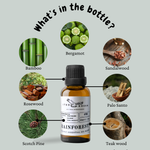 RAINFOREST Essential Oil blend - designed to transport you to a tranquil woodland setting. Picture yourself wandering through the verdant rainforest, surrounded by the rich aromas of sandalwood, cedarwood, palo santo, teak, pine, and ripened bergamot. This olfactory journey offers a profound sense of freshness, peace and serenity, an experience of pure indulgence.