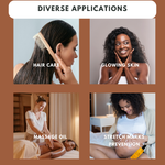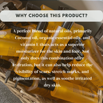 An ideal combination of natural oils, organic essential oils, and vitamin E serves as an excellent moisturiser for the skin and hair. In addition to providing hydration, this blend can assist in diminishing the appearance of scars, stretch marks, pigmentation, and soothing irritated dry skin, while also boosting mood.